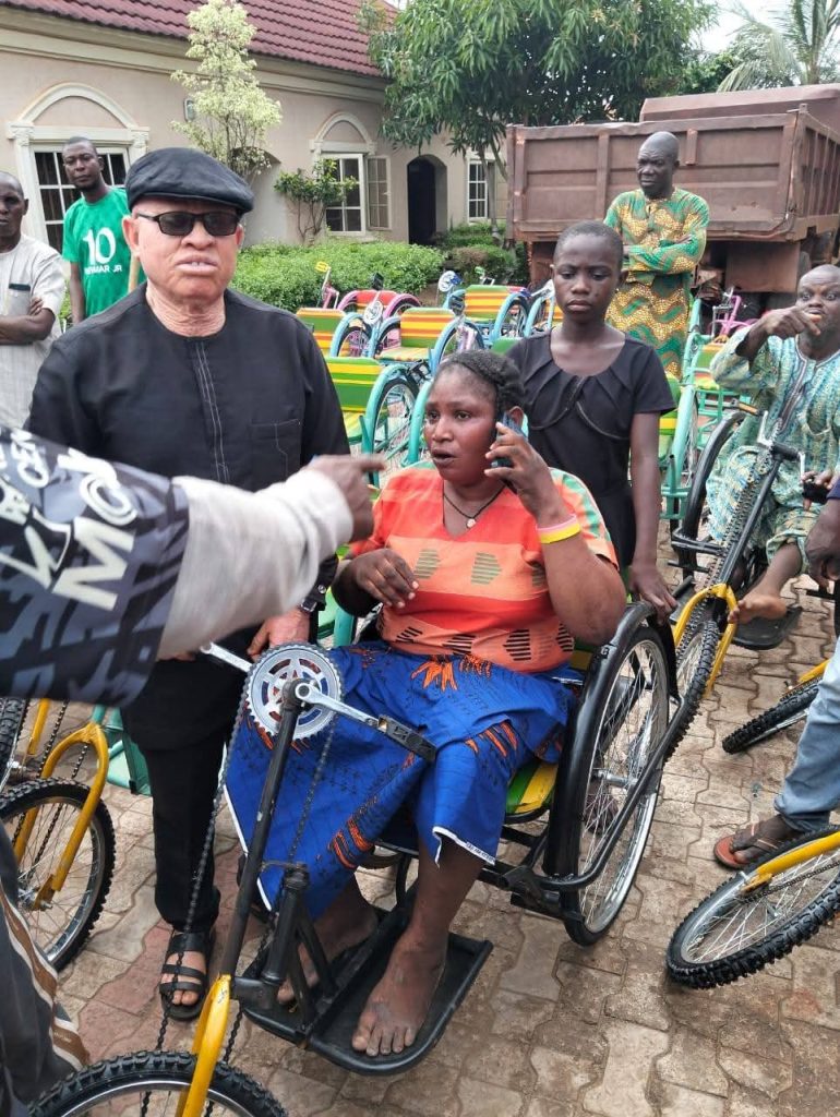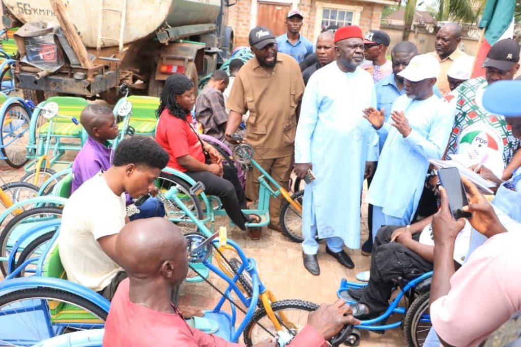 “The Senator representing Benue South Senatorial District and Minority Leader of the Senate, Comrade Abba Patrick Moro has fulfilled his promise to distribute tricycles to individuals with special needs in Benue South courtesy of Beautiful Gate Foundation,” wrote George Alli, Special Legal Assistant to Senator Moro.